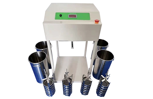 1)震荡架,能放四套筛子,上下移动距离为4厘米,上下振荡速度为每分钟30次。2)水桶四个,高31.5厘米,直径18厘米,用不锈钢制成。 3)筛子四套,每套包括直径为10厘米,高4厘米的筛子5个,(5.0mm、2.0mm、1.0mm、0.5mm、0.25mm)、(注.5.0mm的筛子根据用户的需求可调换成0.106mm的筛子)